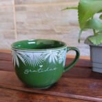 Caneca Xícara Grande Para Caldos 480ml Consumê de Porcelana Verde
